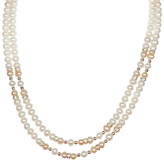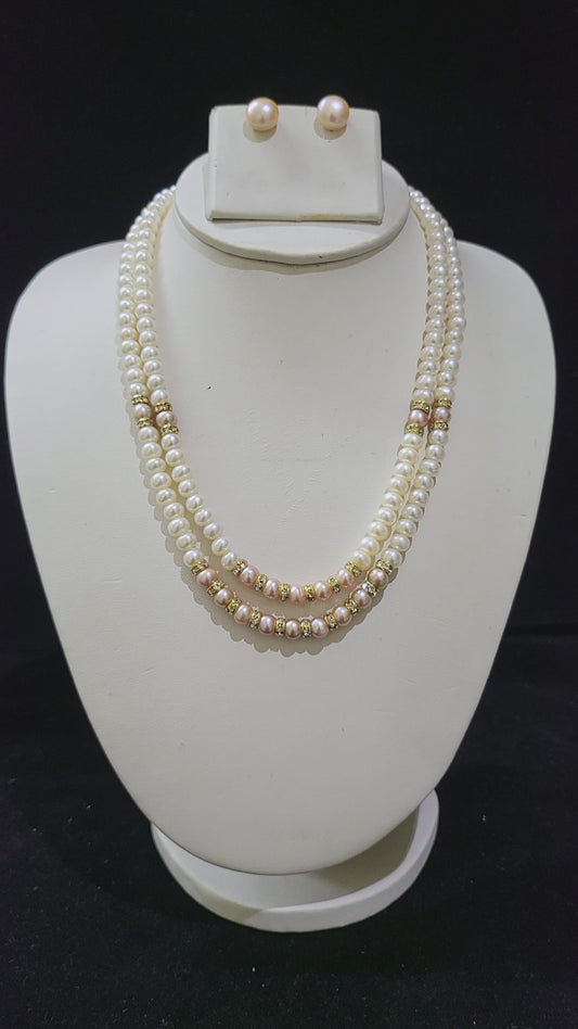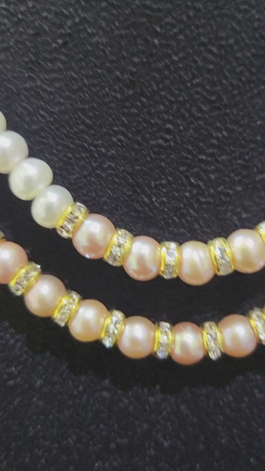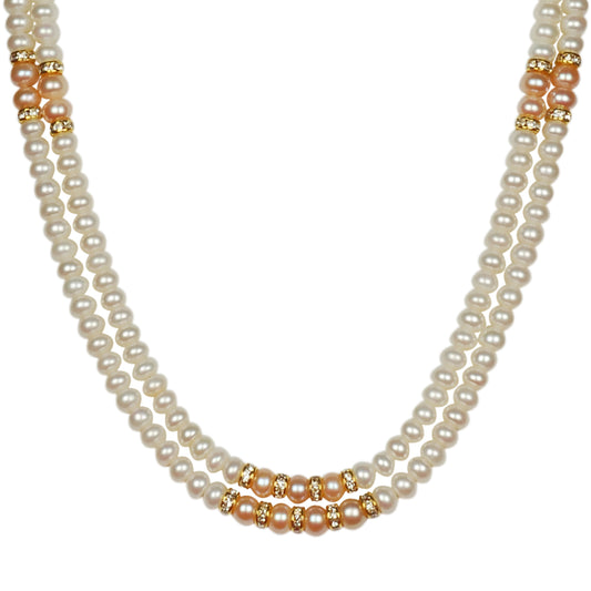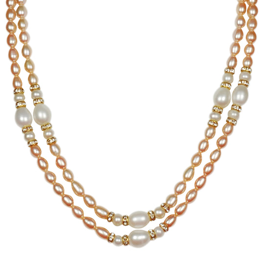 Double Layer Real Pearls Necklace | Peach & White Pearls