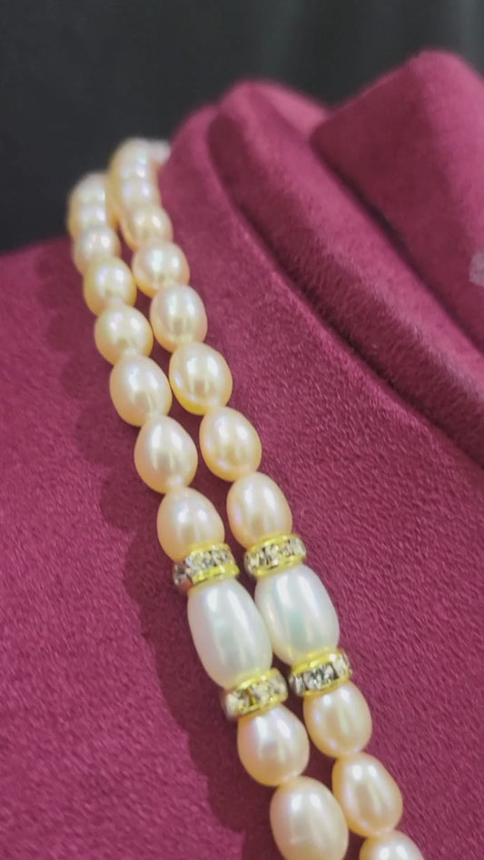 Double Layer Real Pearls Necklace | Peach Oval Pearls