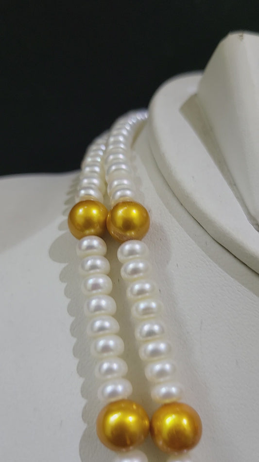 Double Layer Real Pearls Necklace | White pearls & Golden Pearls
