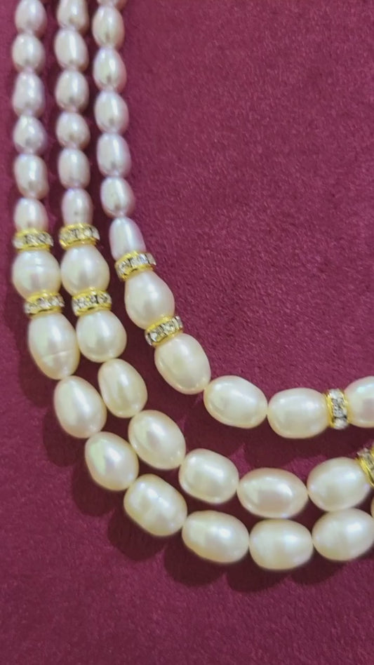 Traditional Triple Layer freshwater Real Pearl Necklace