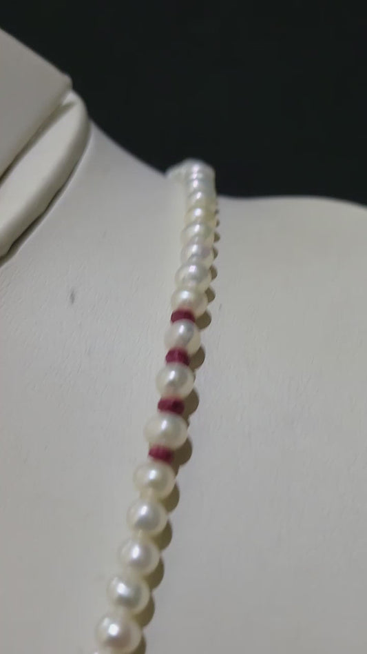 White & Red Pearl Single Layer Set | Classic Real Pearl Necklace