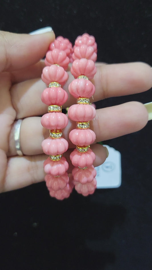 Set of 2 | Real Pearl Bangles with Pumpkin Pink Beads (Gold Alloy Base) | Sizes 2.2 to 2.10