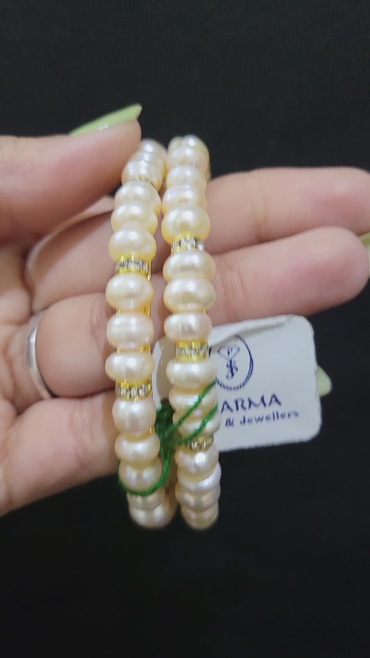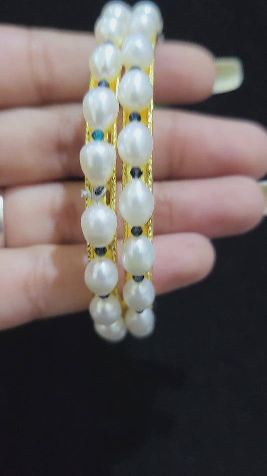 Set of 2 | Real Pearl Bangles with Gold Alloy Base (Golden) | Sizes 2.2 to 2.10