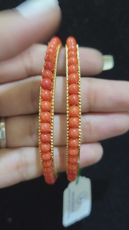 Set of 2 | Coral Beads Bangles (Gold Alloy Base) | Sizes 2.2 to 2.10
