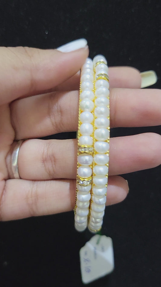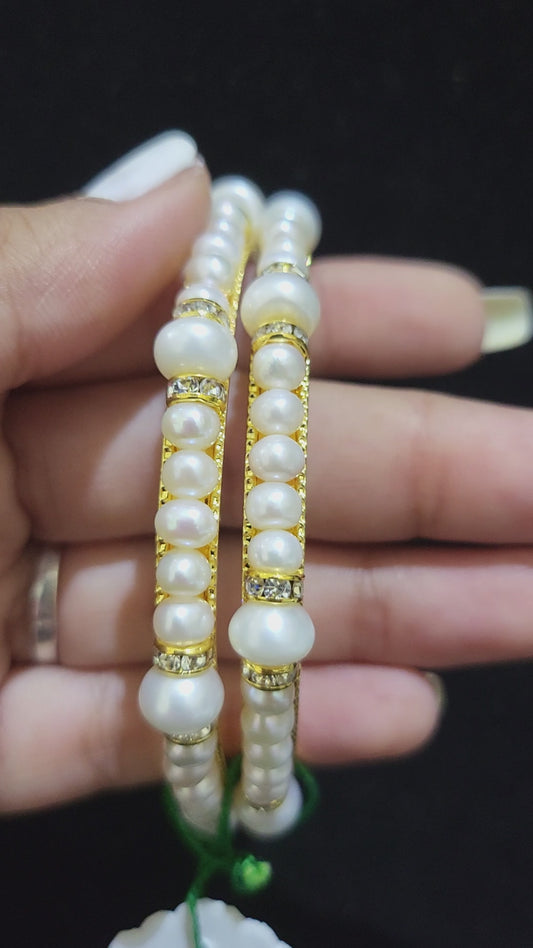Set of 2 | Real Pearl Bangles | Pure White Pearls (Gold Alloy Base) | Sizes 2.2 to 2.10