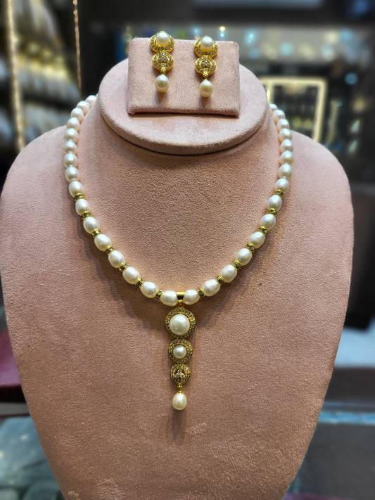 Emerald Freshwater Real Pearls Necklace | With Earrings