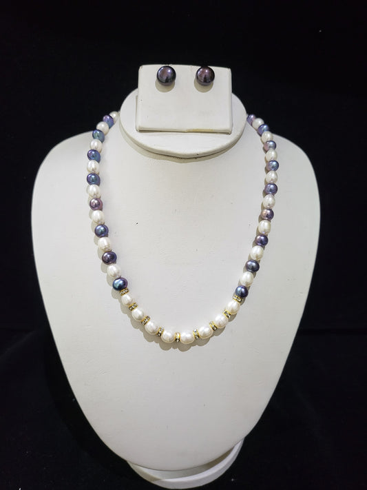 White & Blue Pearl Single Layer Set | Classic Real Pearl Necklace