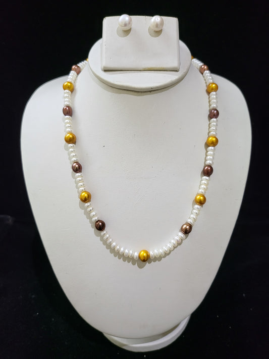 Elegant Freshwater Real Pearl Necklace with Earrings | Available in 4 Colours
