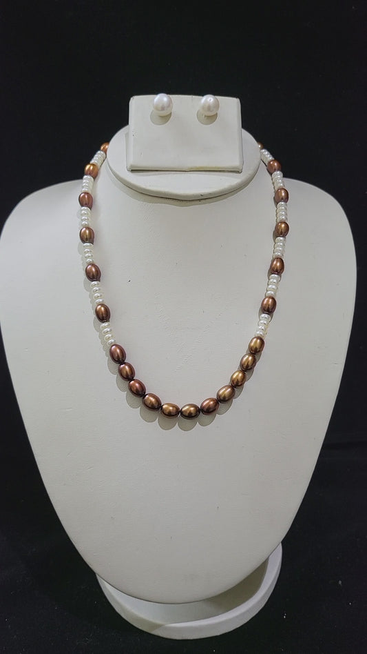 Singe Layer Real Pearls Necklace | White & Brown Pearls