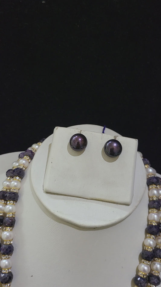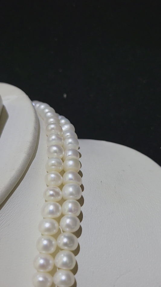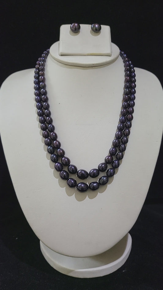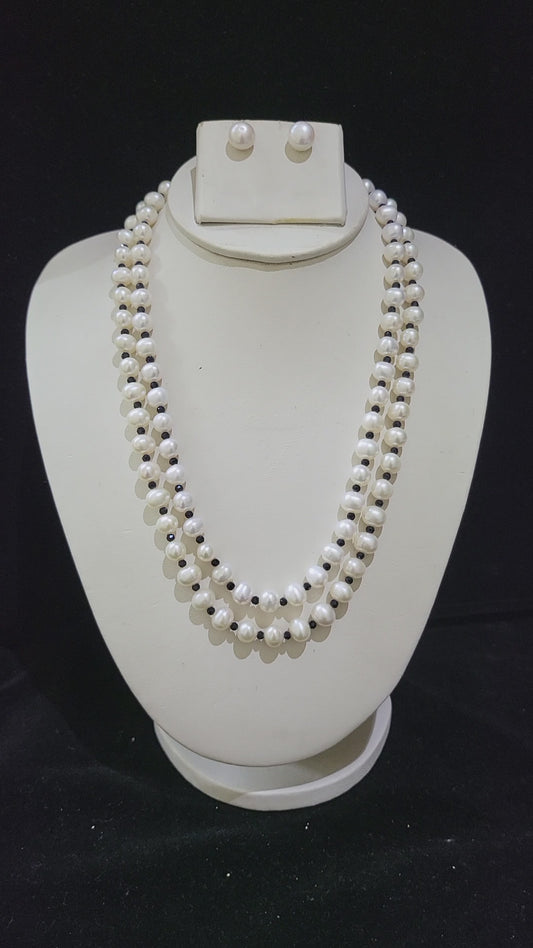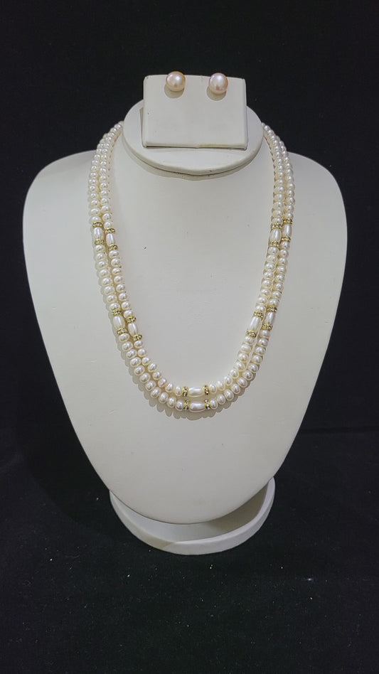 Double Layer Freshwater Real Pearls Necklace | With Drop Earrings