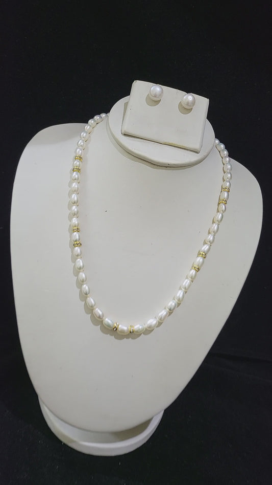 White Pearl Single Layer Freshwater Set | Classic Real Pearl Necklace