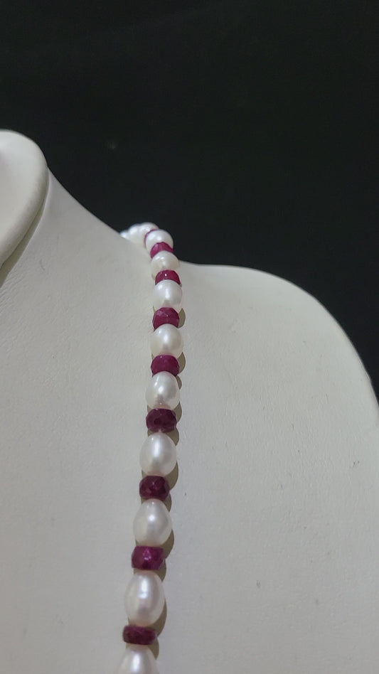 Single Layer Long Length Real Ruby Certified Quality of Real Pearls