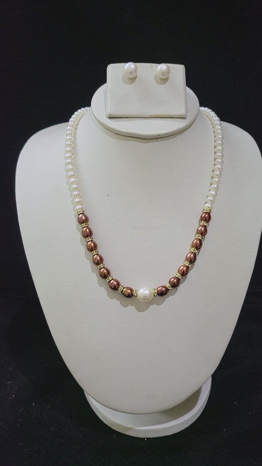 Single Layer Real Pearls Necklace | White pearls & Brown Pearls