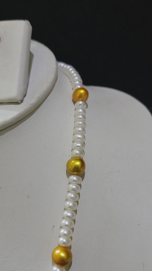 Single Layer Real Pearls Necklace | White pearls & Golden Pearls