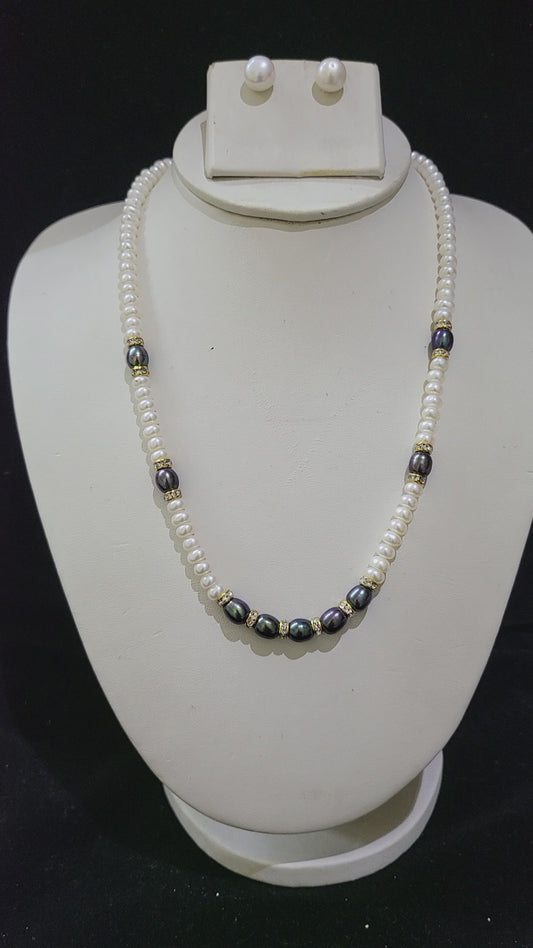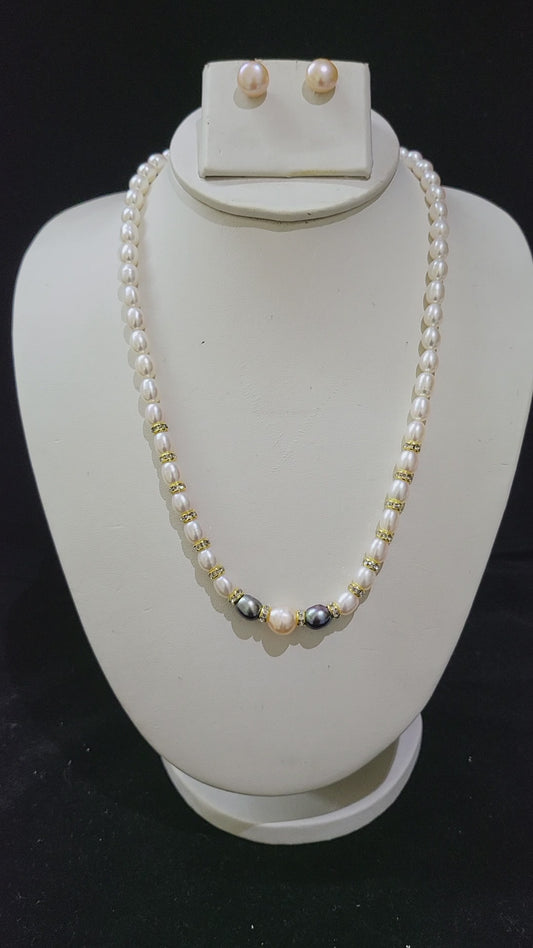 Fancy Single Layer Freshwater Pearl Set | Classic Real Pearl Necklace