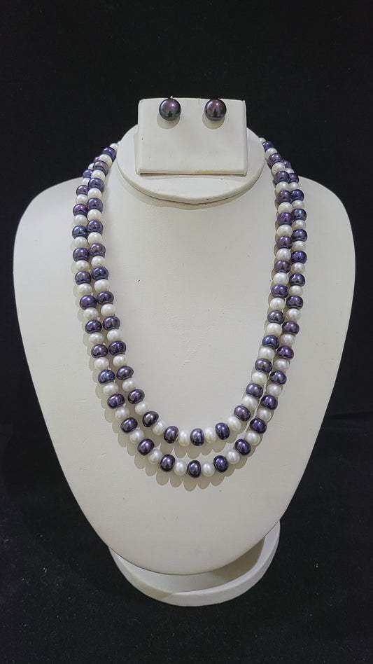 Double Layer Freshwater Real Pearls Necklace | With Drop Earrings