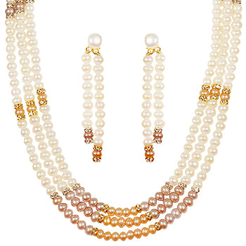 Triple Freshwater Real Pearl Necklace with Long Earrings