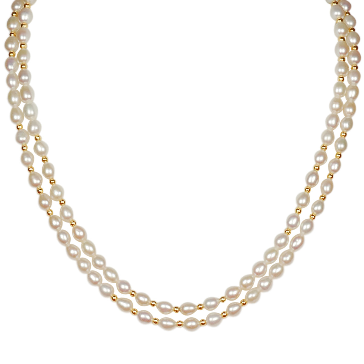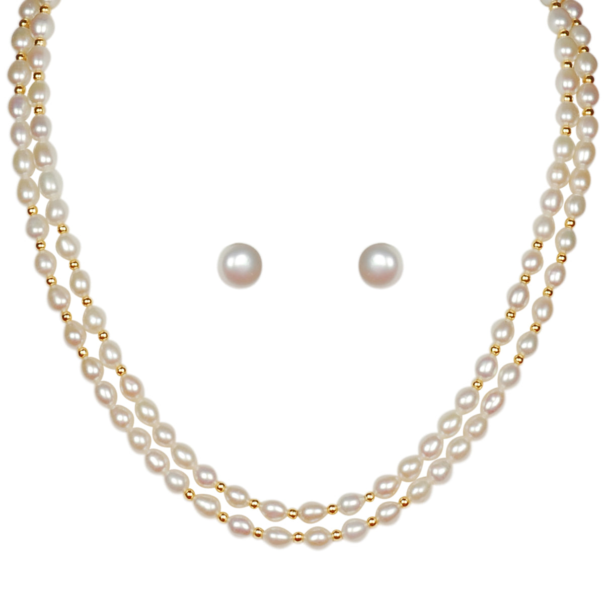 Classic Double Layer Freshwater Real Pearl Necklace with Stud Earrings