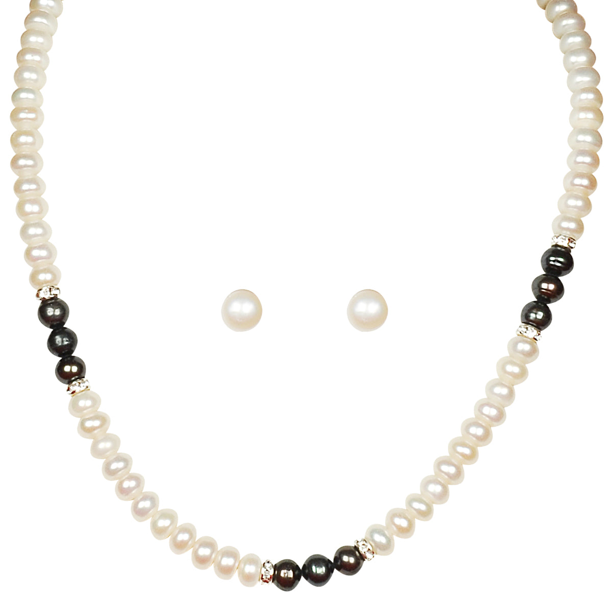 Single Layer Freshwater Real Pearl Necklace with Stud Earrings