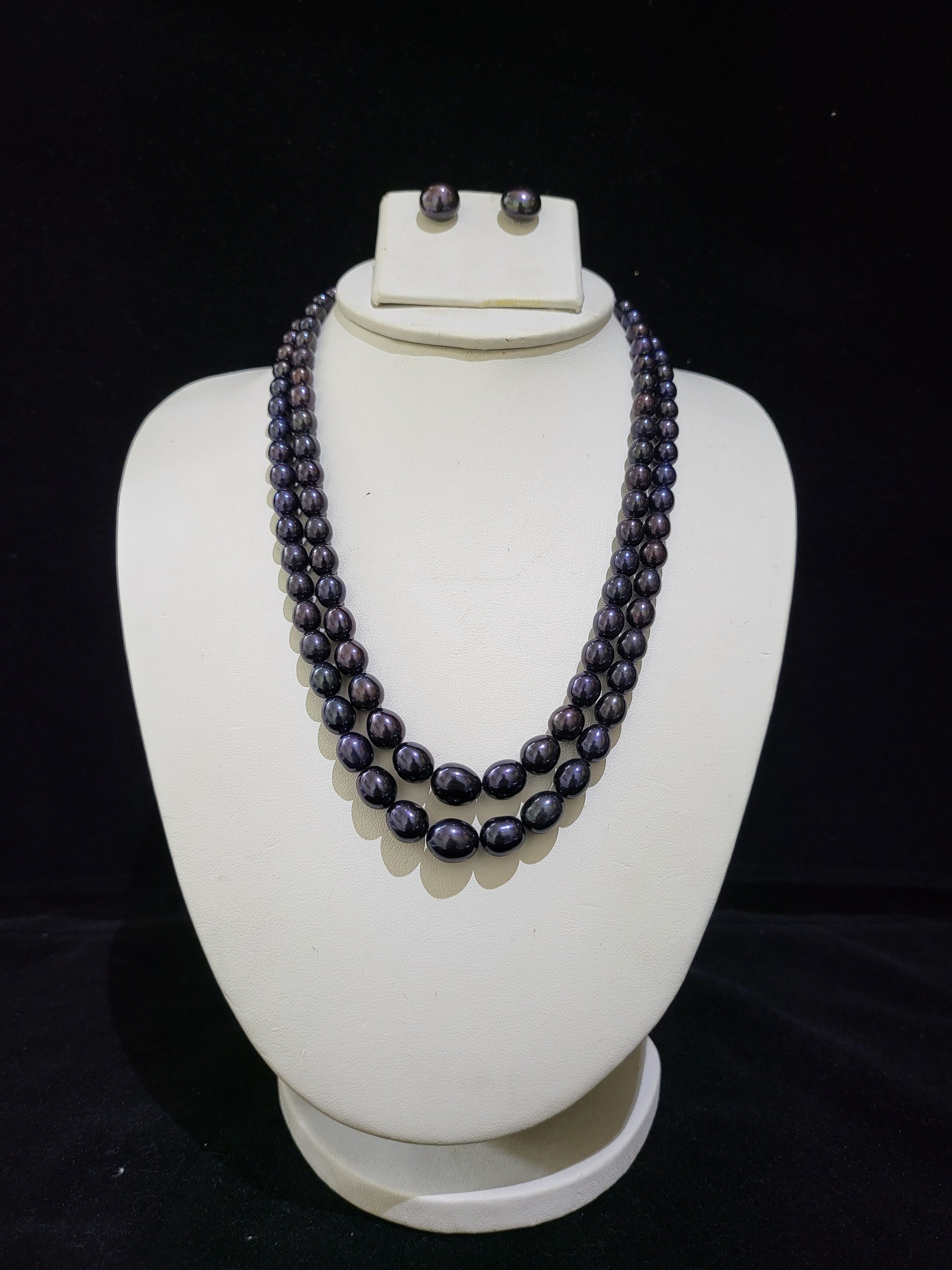 Double Layer Real Pearls Necklace | Grey Oval Big Pearls