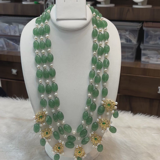 Turn heads with this exquisite Emerald Green Beaded Pearl Necklace Set — a masterpiece of elegance and royal craftsmanship.