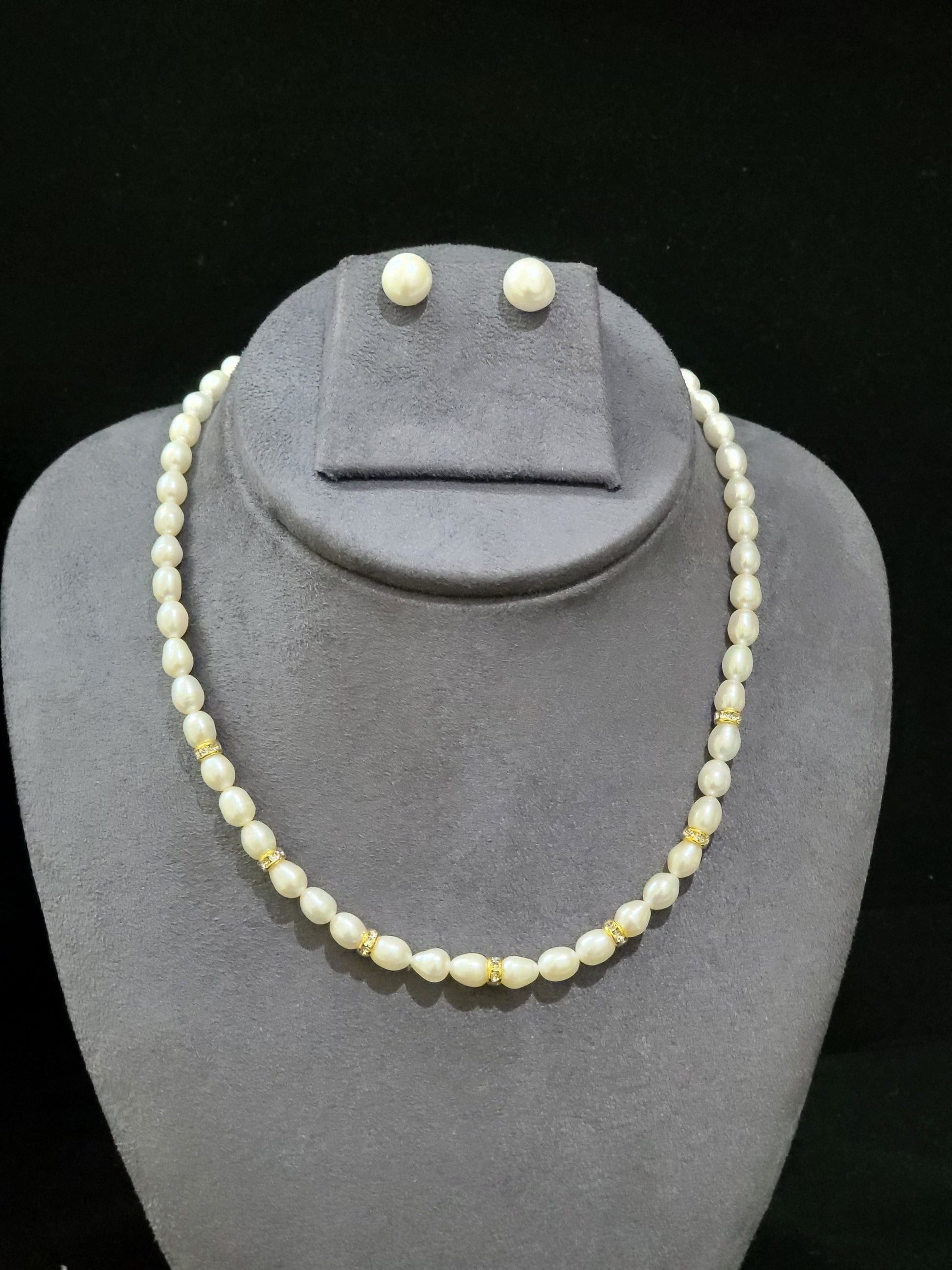 Fancy Single Layer Freshwater Pearl Set | Classic Real Pearl Necklace