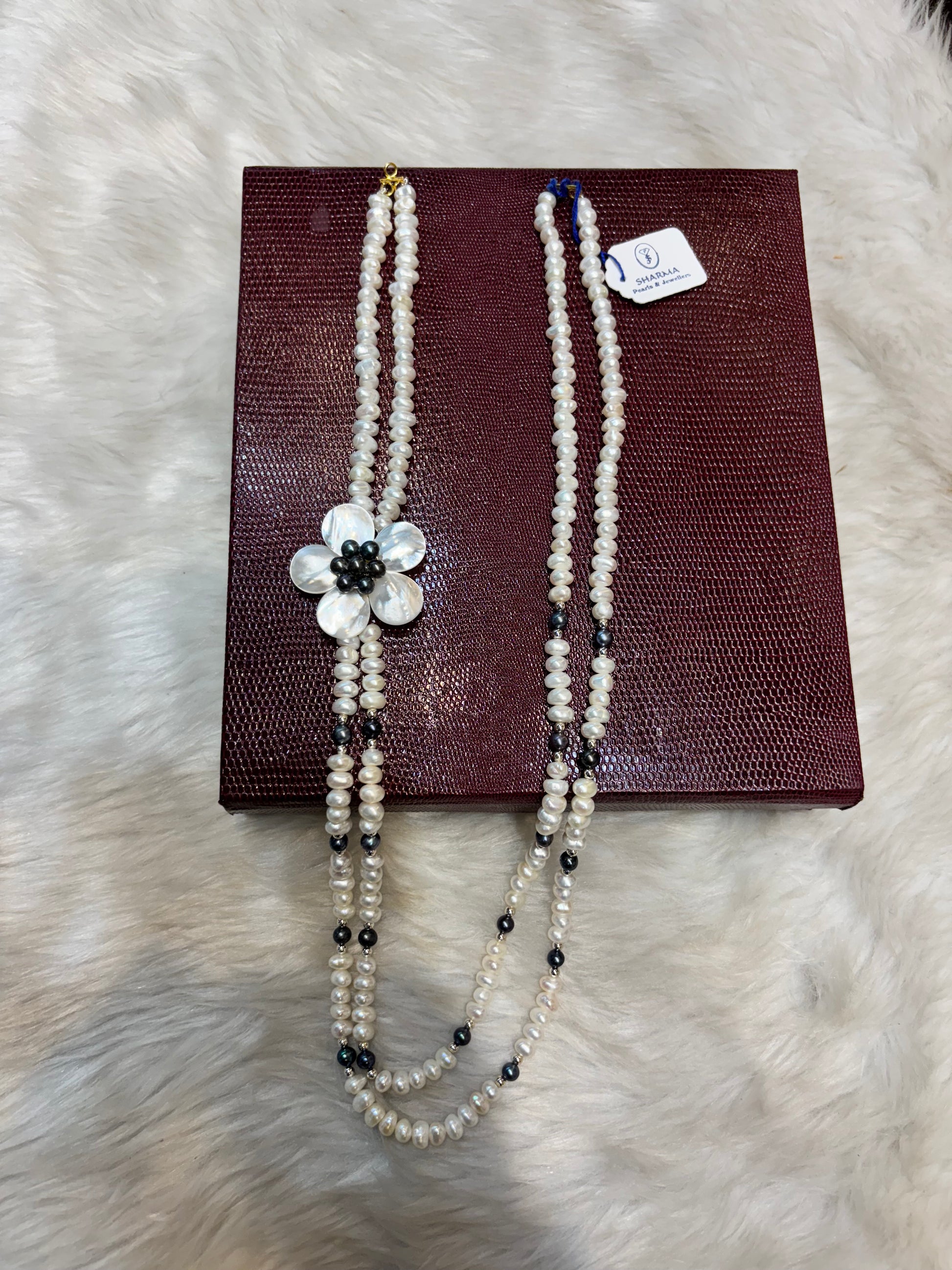 Floral Side Pendant Pearl Set – Elegant Real Pearls Necklace