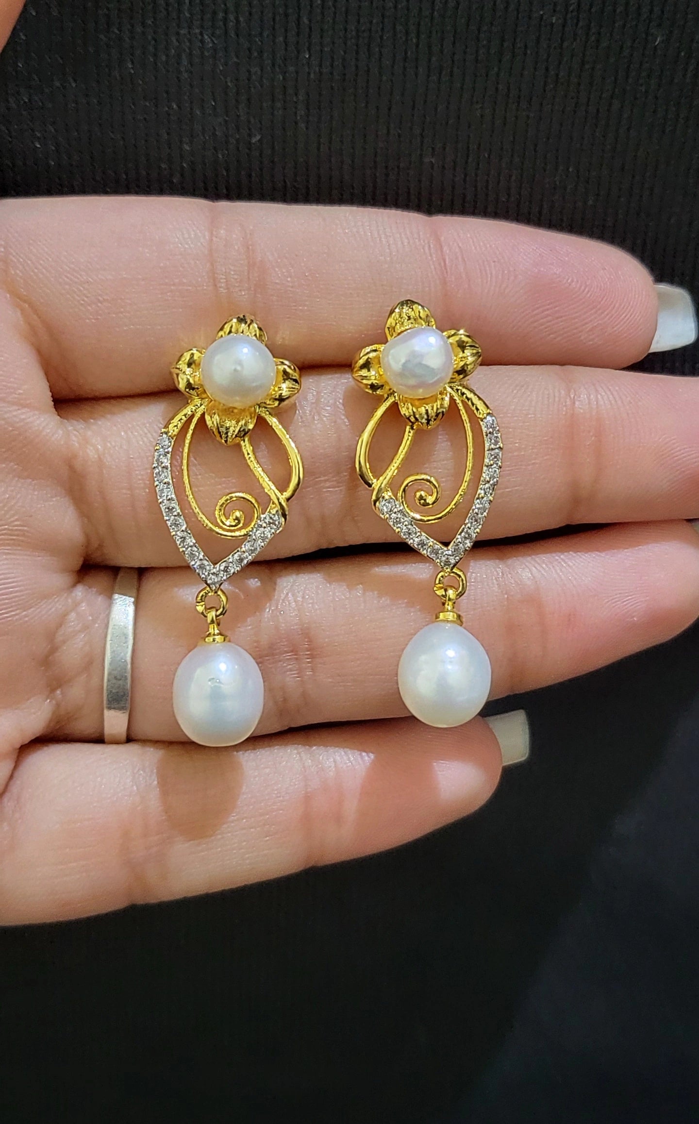 Golden Fresh Pearl Earrings | Freshwater Real Pearls