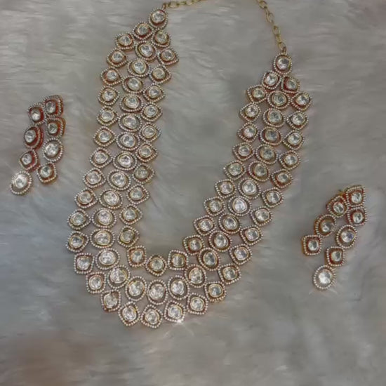 ✨ Elevate your style with our Mozonite 3-Layer Medium Length Necklace – crafted with premium quality stones for a luxurious and elegant look. Perfect for weddings, parties, and festive occasions, this necklace adds a royal touch to your outfit.