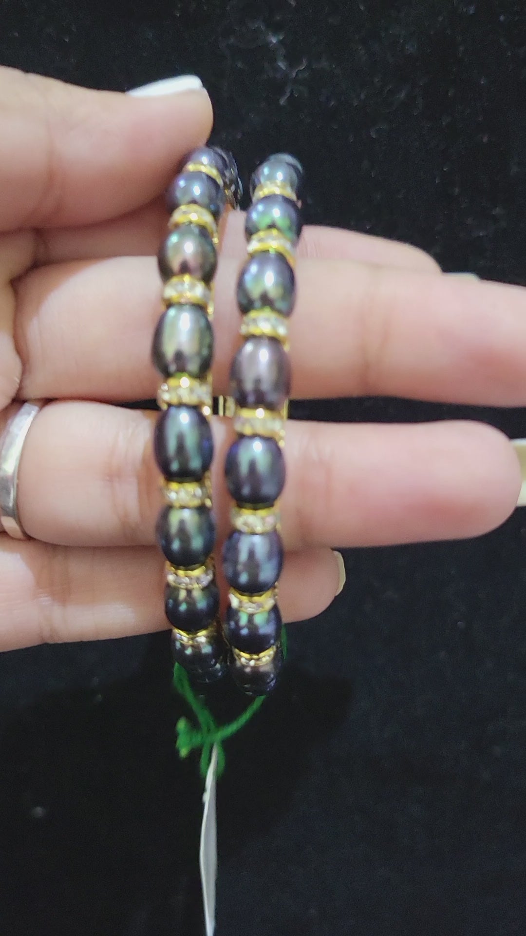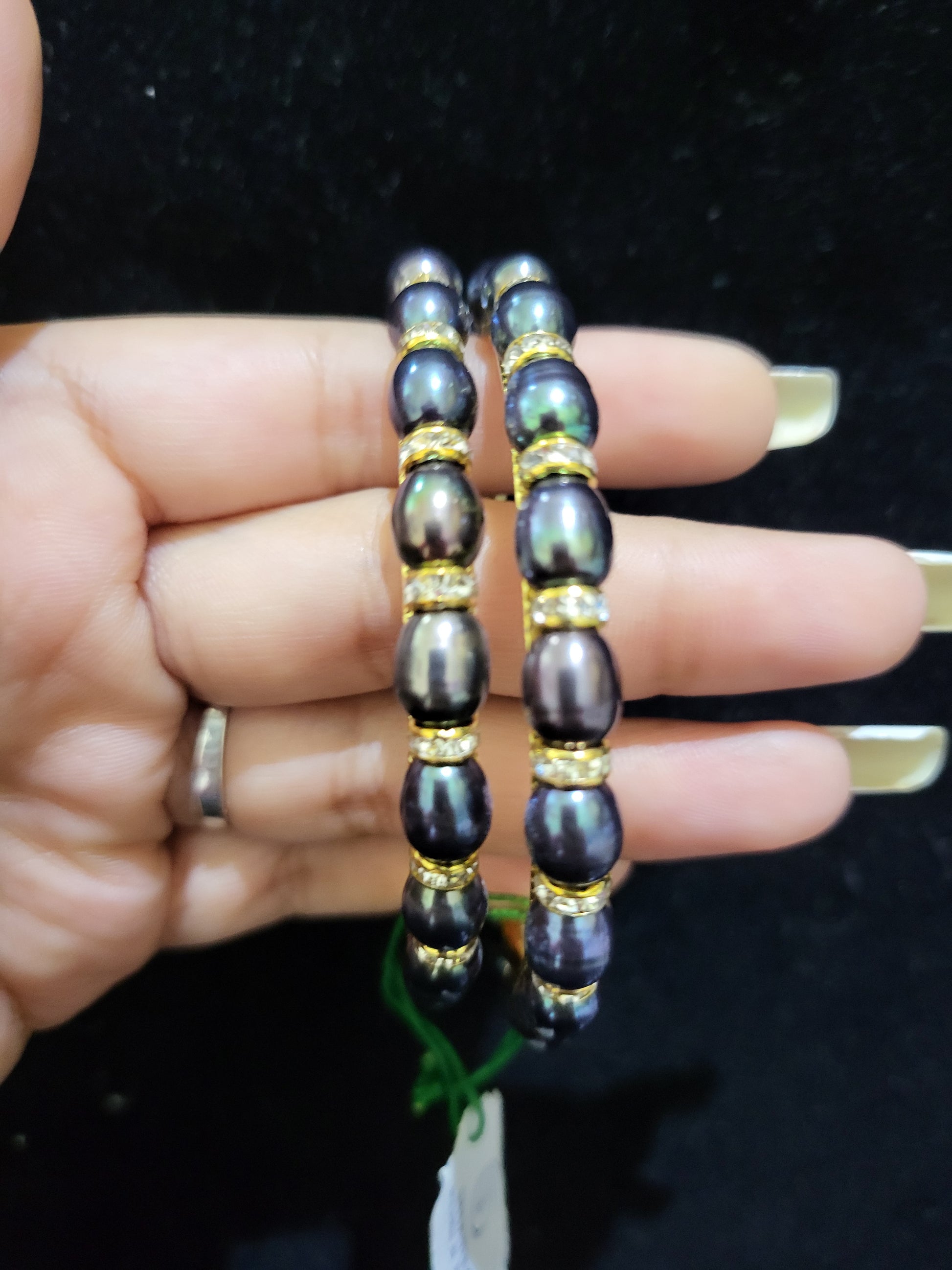 Set of 2 | Real Black Pearl Bangles (Gold Alloy Base) | Sizes 2.2 to 2.10