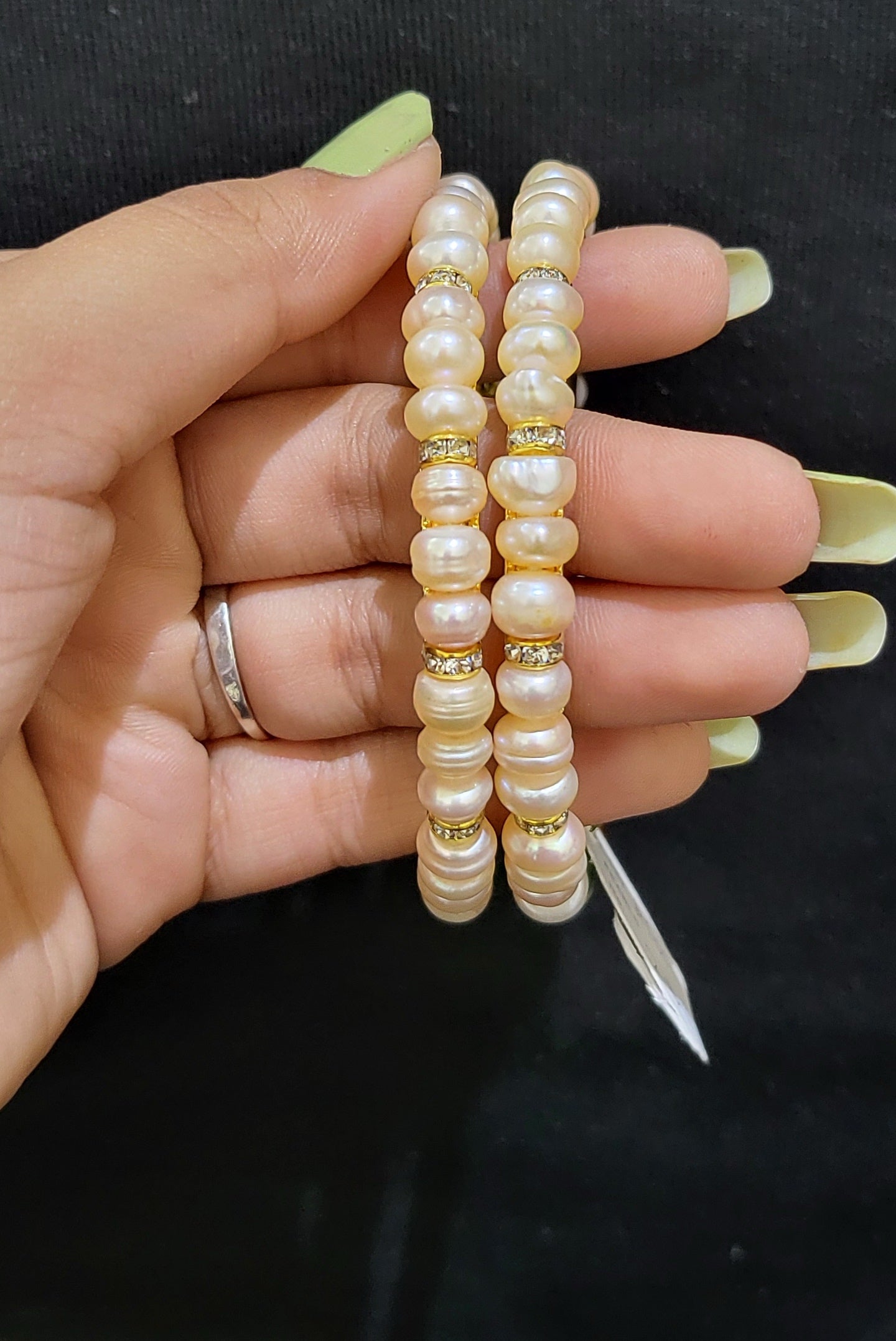 Set of 2 | Real Pearl Bangles with Gold Alloy Base (Golden) | Sizes 2.2 to 2.10