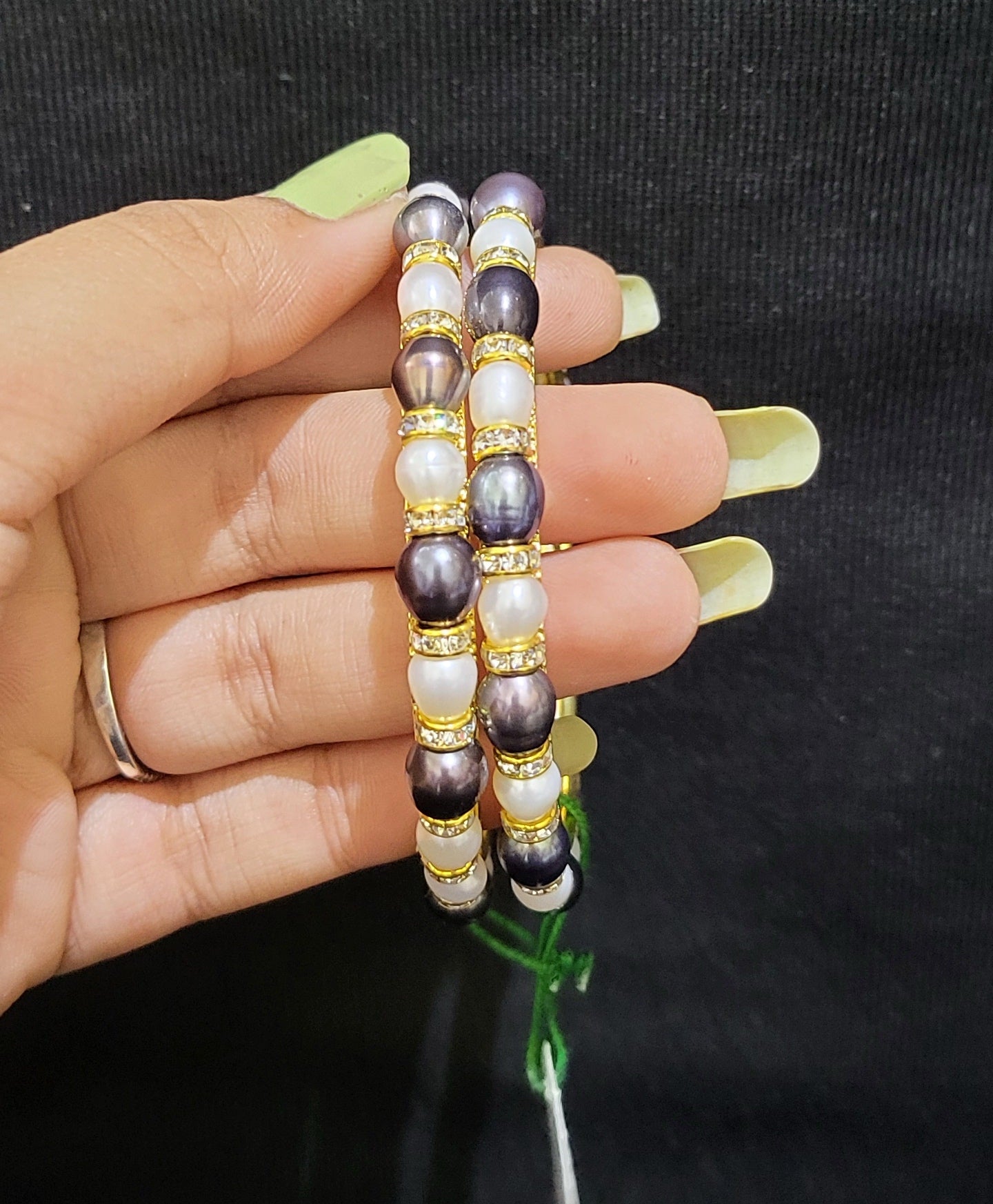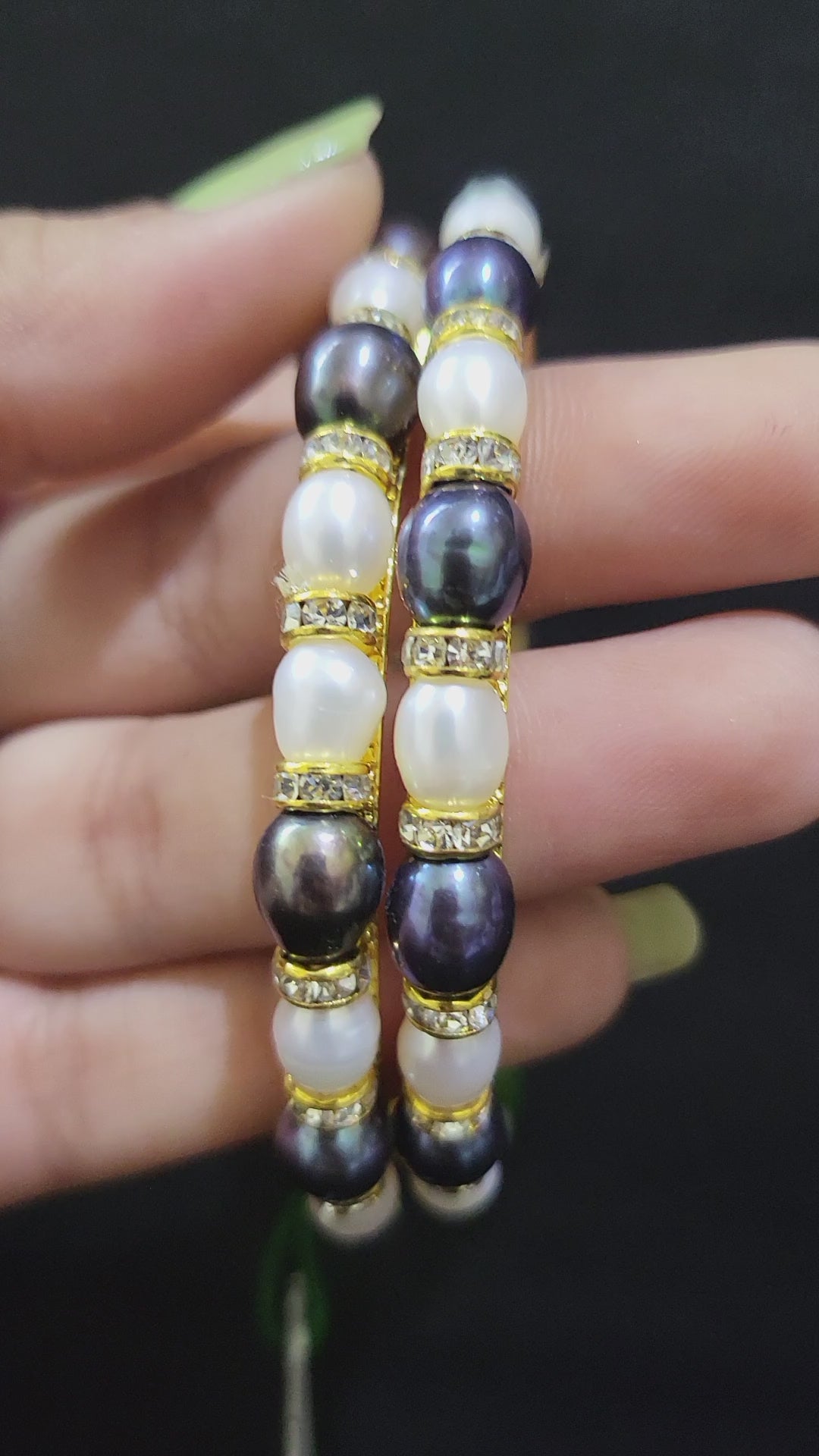 Set of 2 | Real Pearl Bangles with Gold Alloy Base | Sizes 2.2 to 2.10