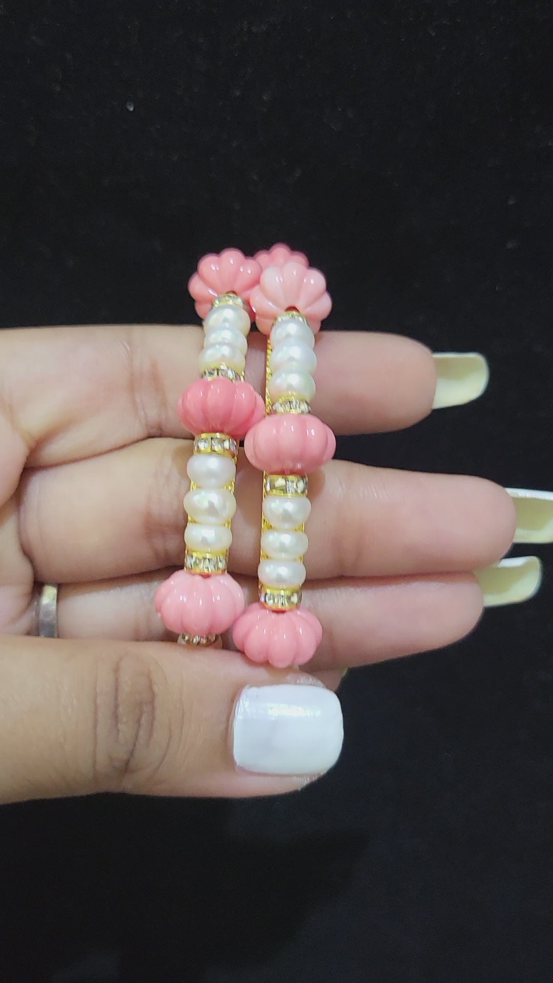 Elevate any outfit with this elegant set of 2 Real Pearl Bangles featuring Gold Alloy Base and Pumpkin Pink Beads. Available in sizes 2.2 to 2.10, these versatile bangles add a touch of sophistication to any look. Perfect for any occasion, these bangles make a statement in style and quality.