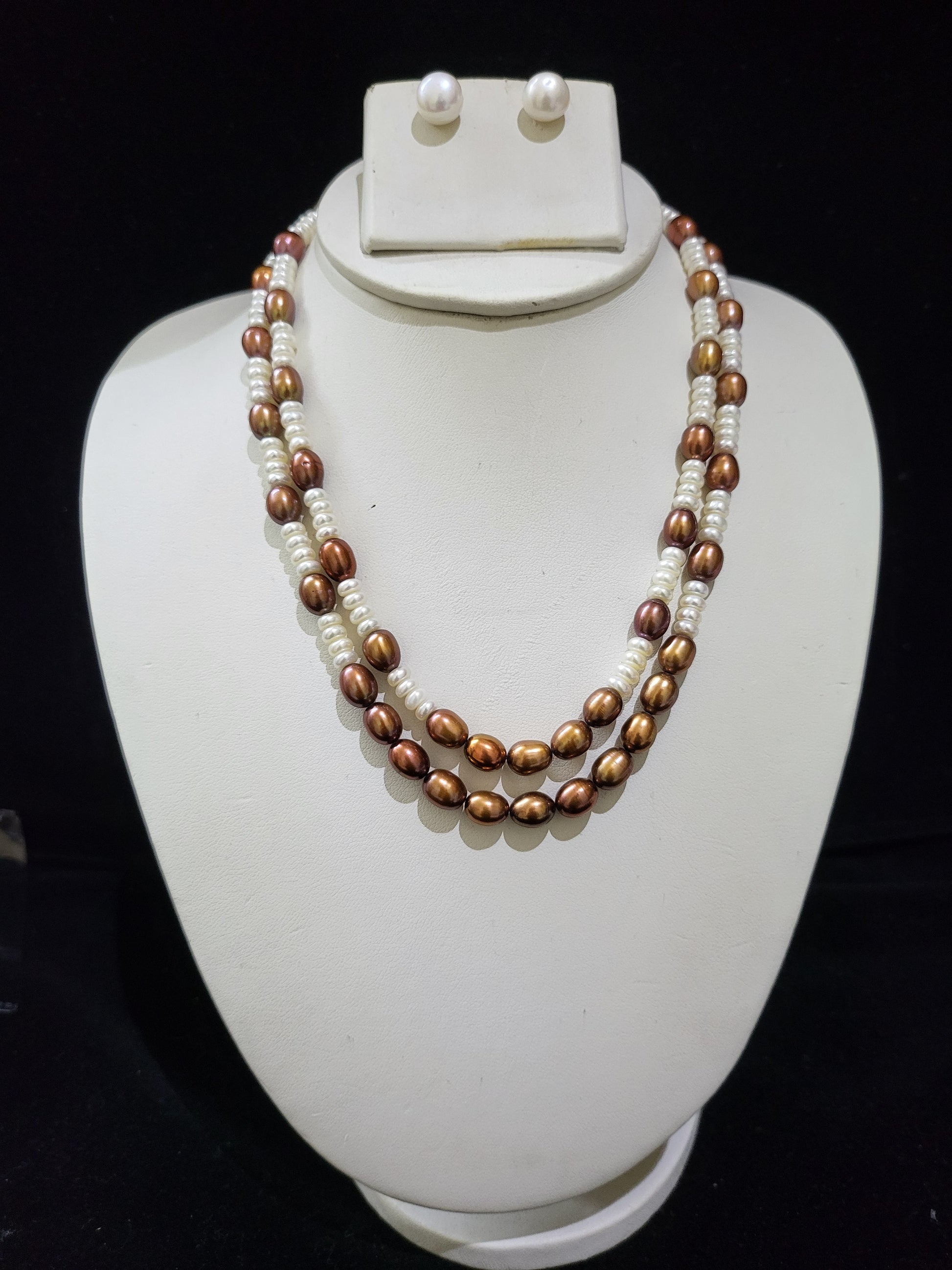 Double Layer Real Pearls Necklace | White & Brown Pearls