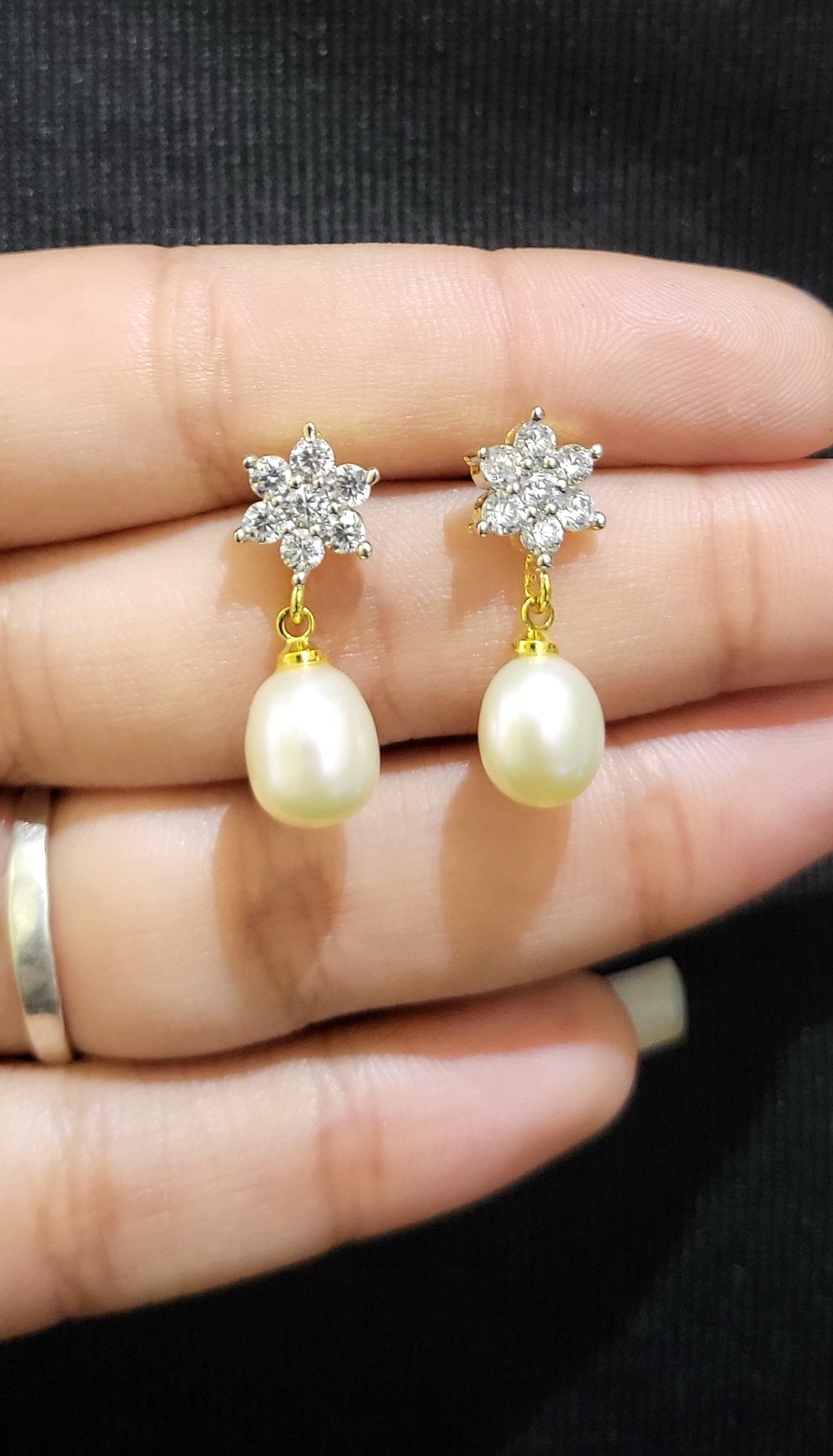 Star Drop Fresh Pearl Earrings | Freshwater Real Pearls