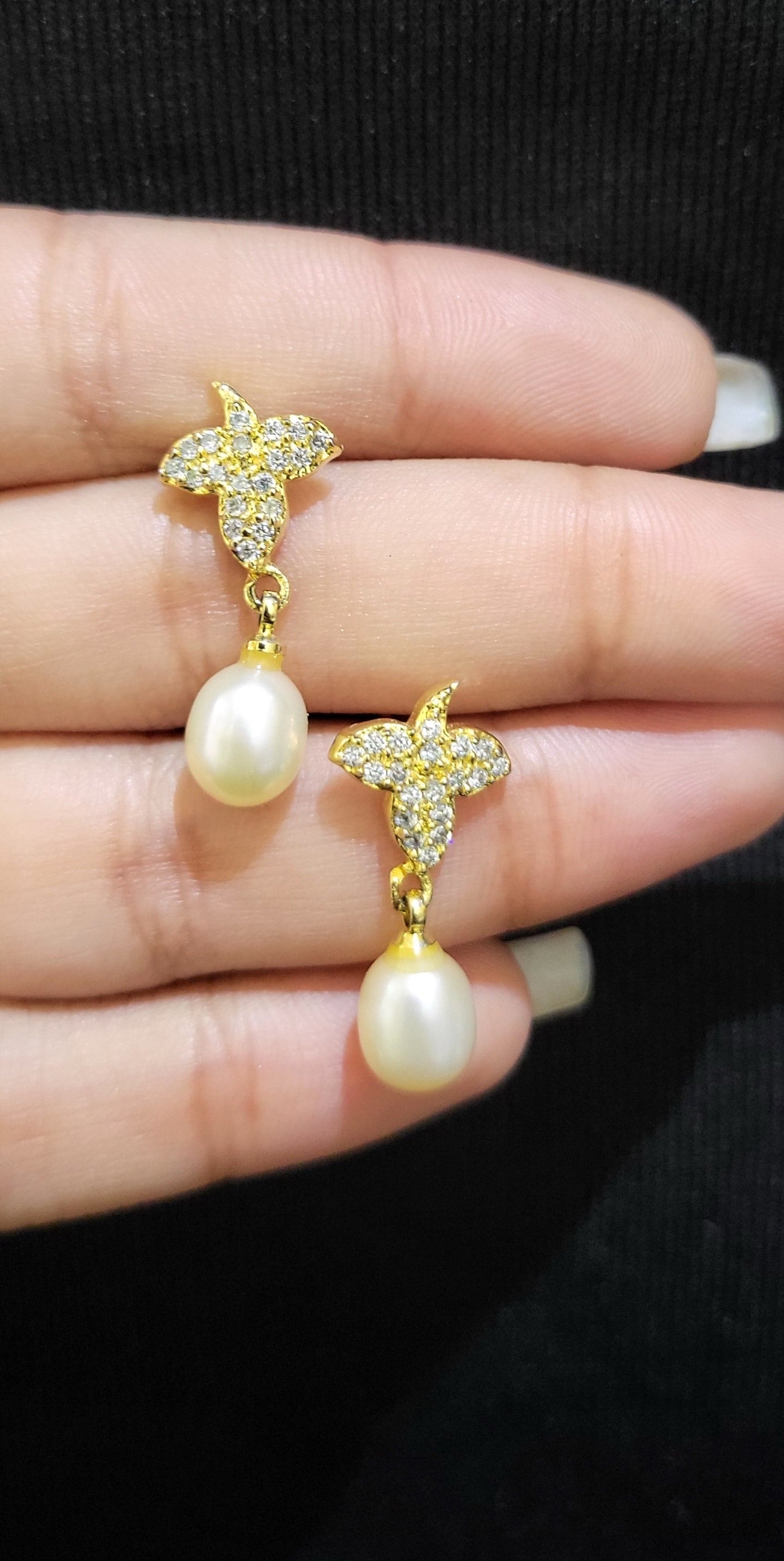 Traditional Drop Fresh Pearl Earrings | Freshwater Real Pearls