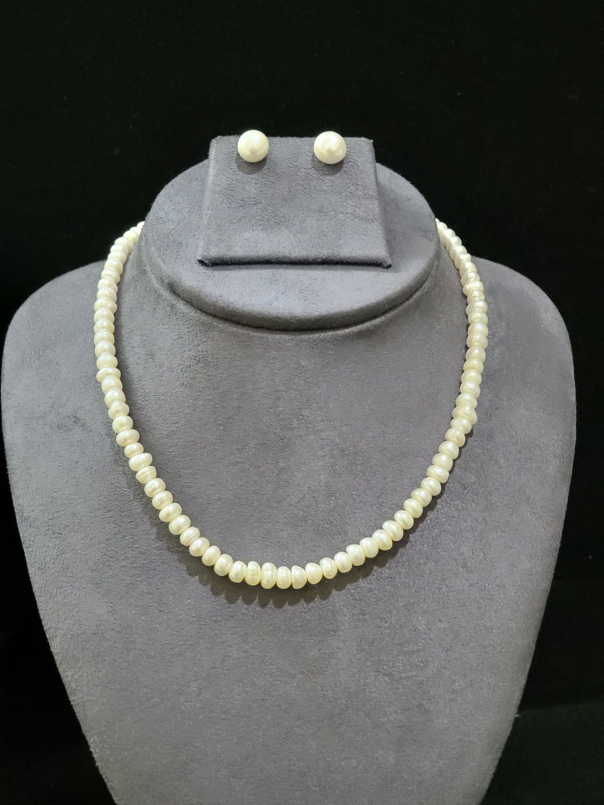 White Pearl Single Layer Freshwater Set | Classic Real Pearl Necklace